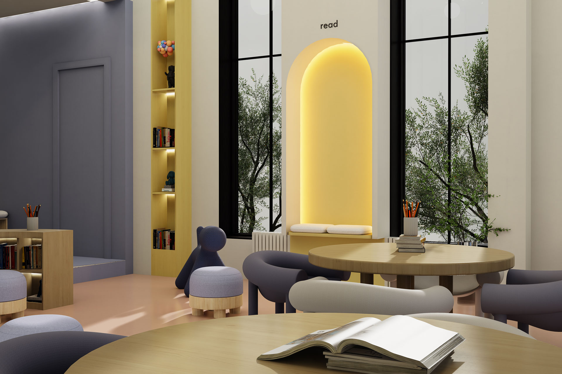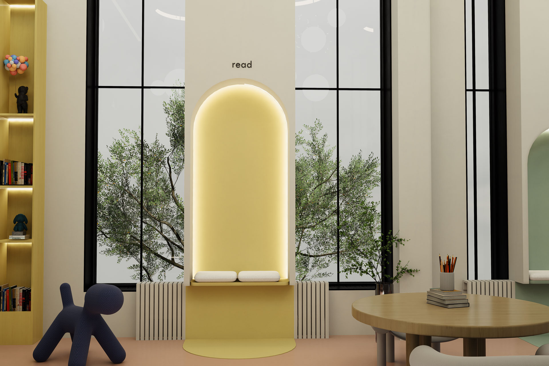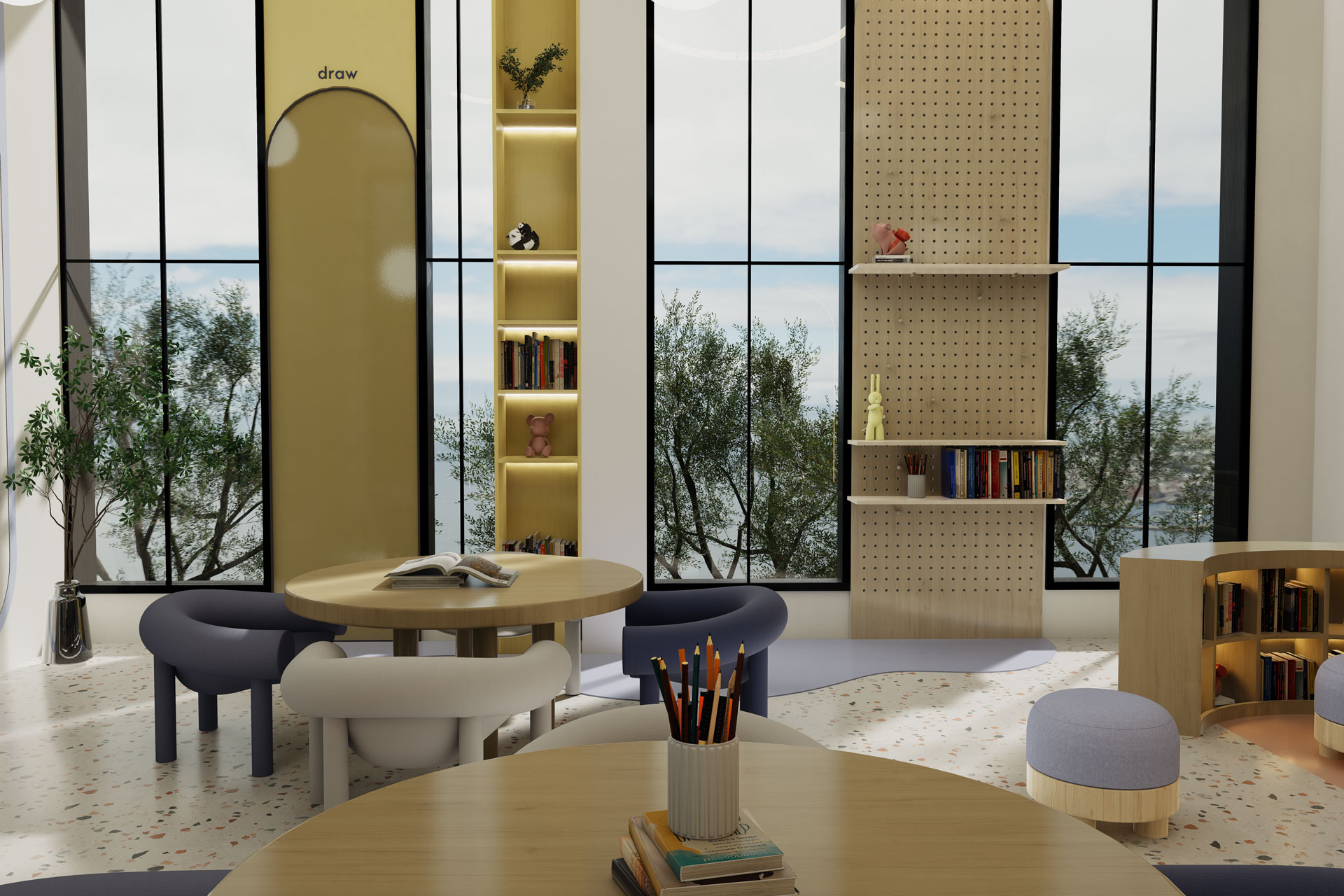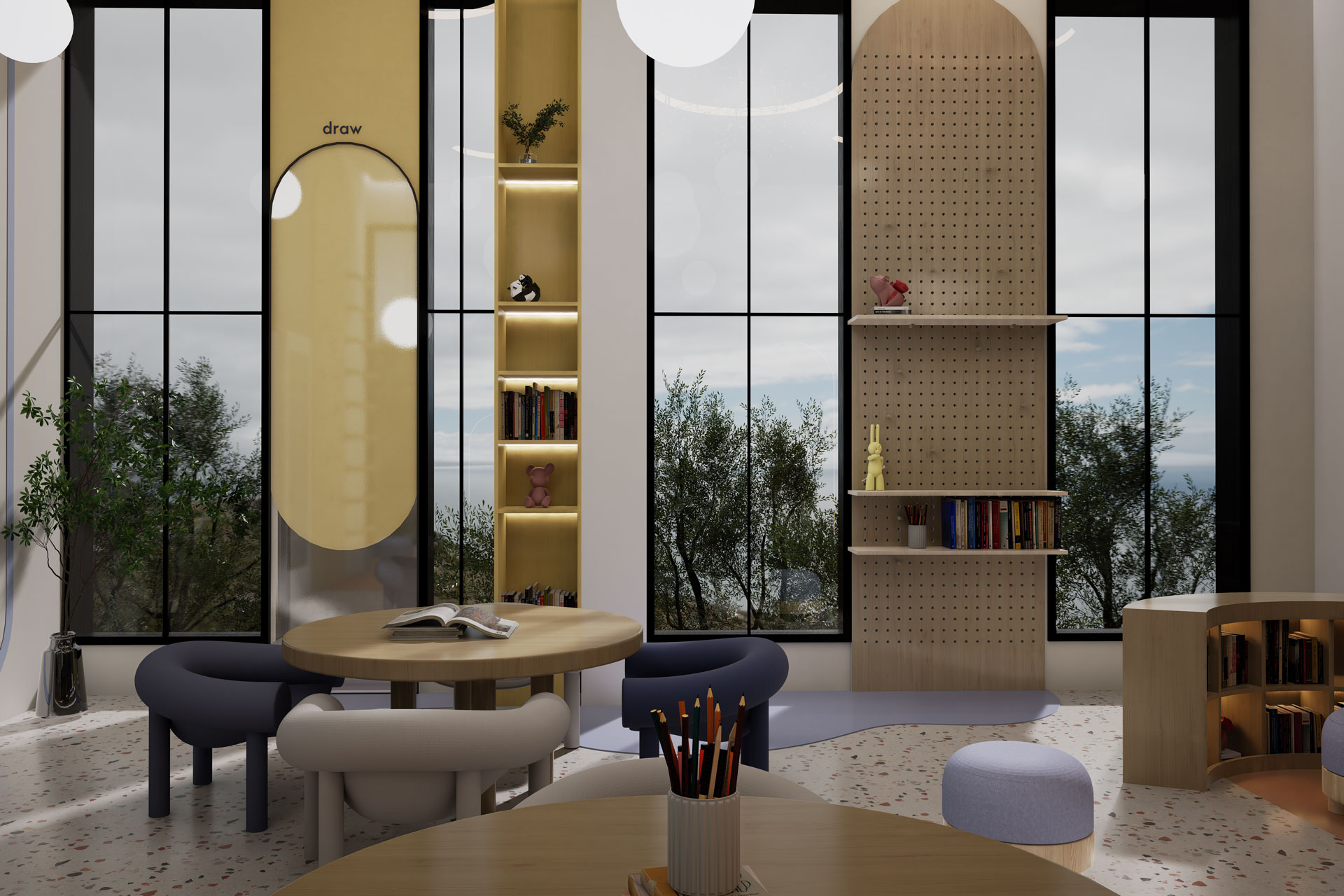 Inside, the materialsâsoft woods, warm tones, and rounded geometriesâcompose a language without edges. These are forms that do not command but invite: touch me, play with me, become part of me. This is architecture that teaches without words.