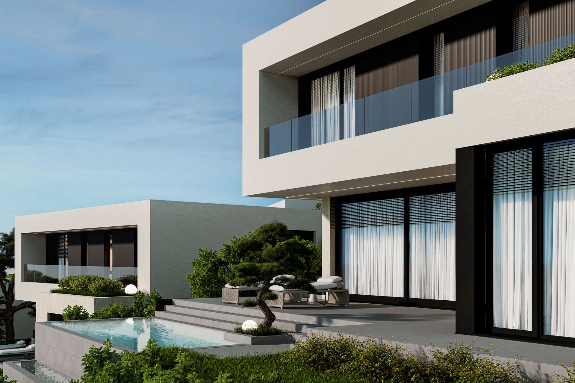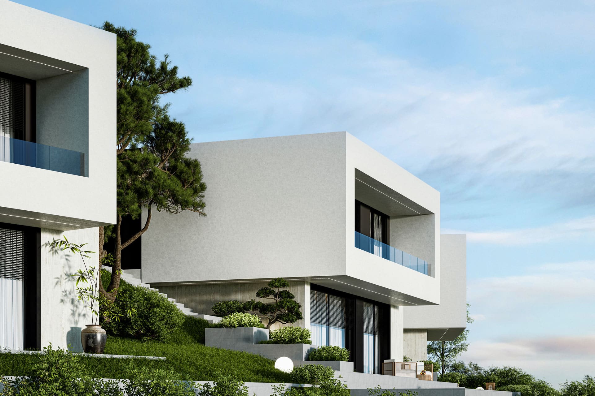 Me linja të drejta, volumetri të pastër dhe një gjuhë arkitekturore diskrete, çdo shtëpi është konceptuar si një urë mes ambientit të jashtëm dhe atij të brendshëm – duke ndarë me butësi, por edhe duke lidhur thellësisht jetesën me natyrën përreth.