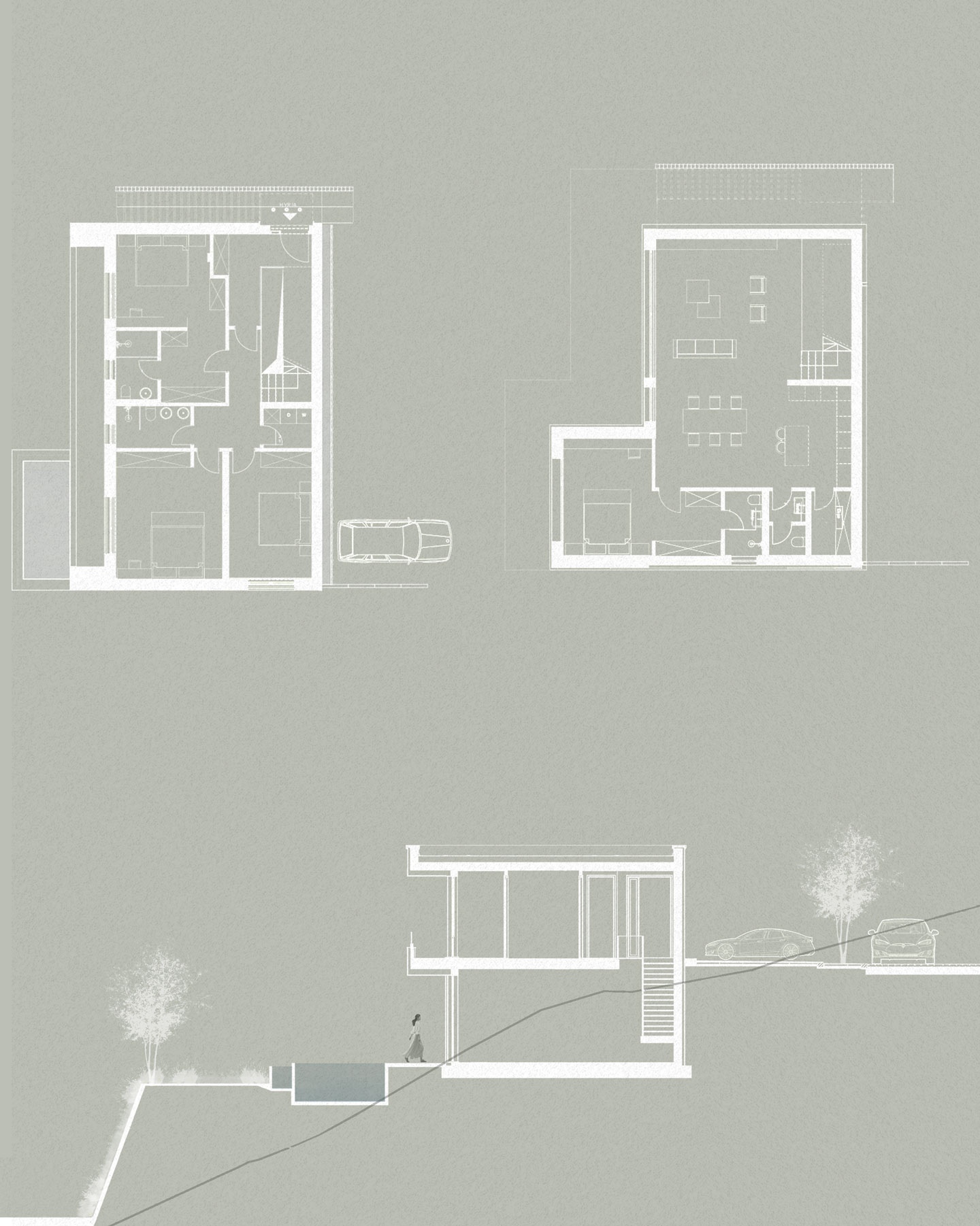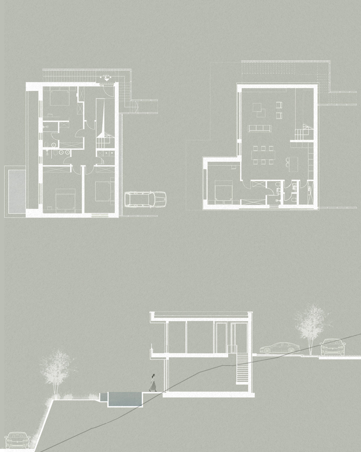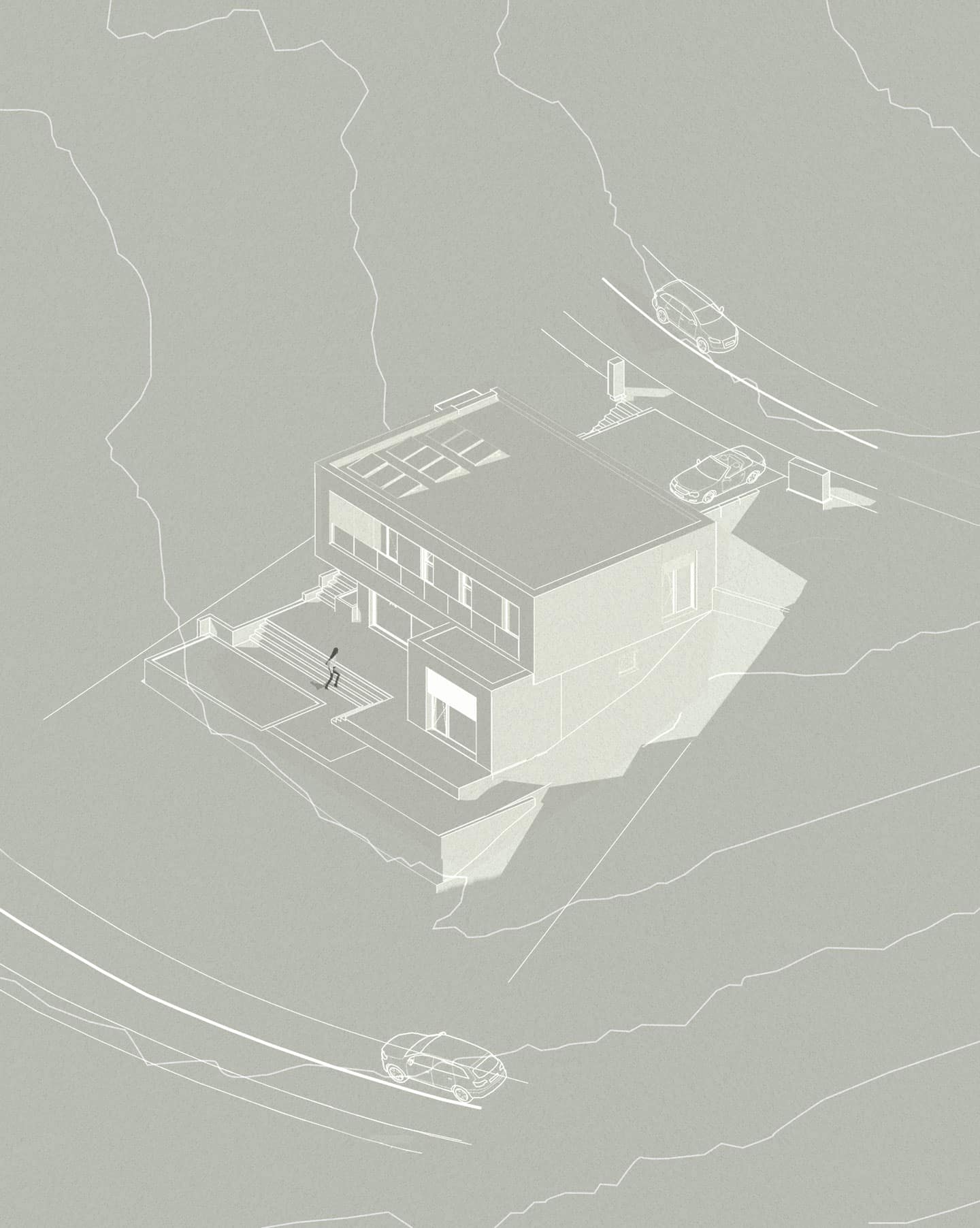 Shtëpitë janë të integruara me pjerrësinë e terrenit, jo duke e dominuar atë, por duke u përshtatur me të, duke krijuar nivele të ndryshme për jetesë, pamje dhe përvojë.