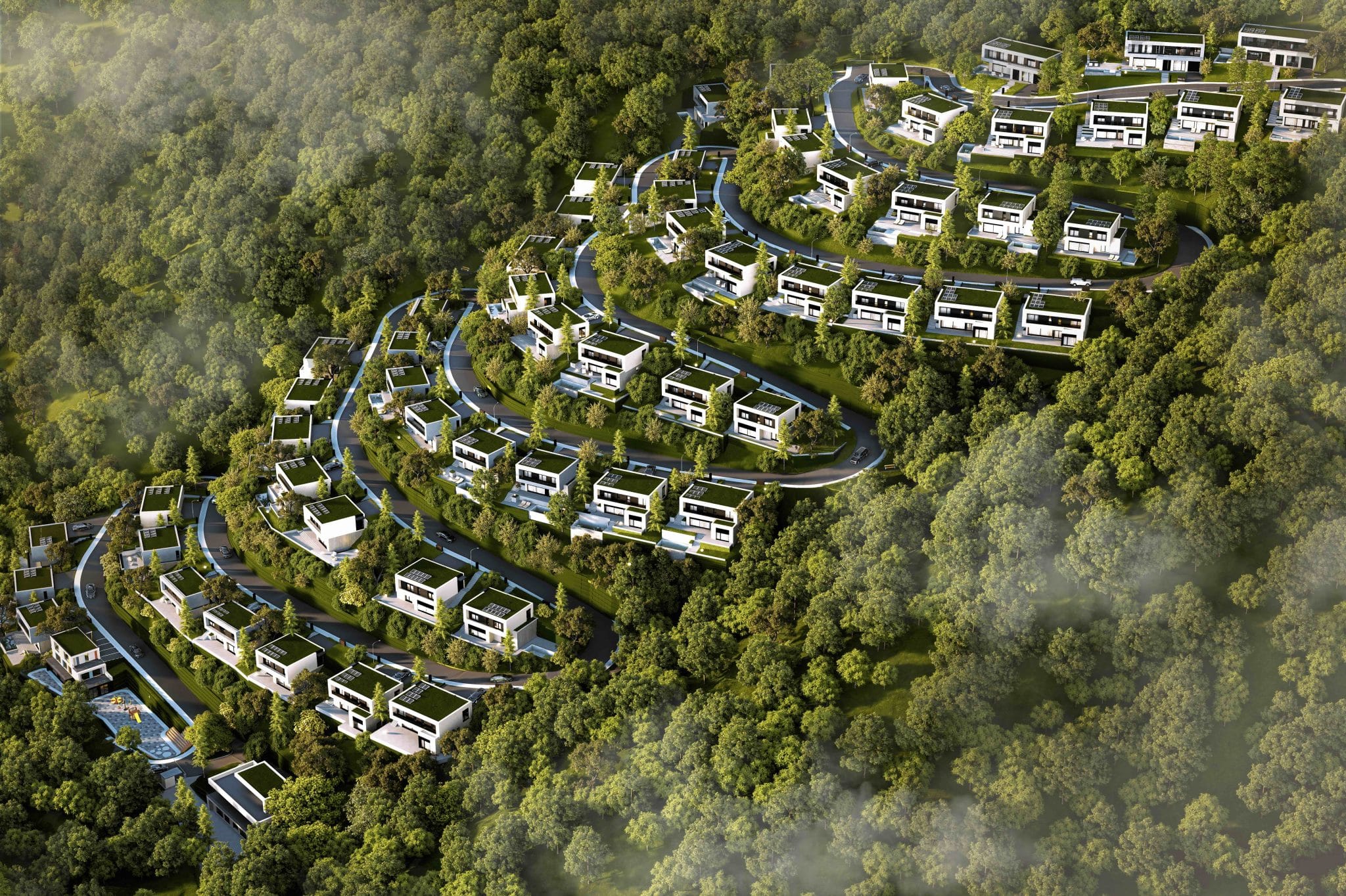 Lagjja është projektuar në harmoni të plotë me natyrën, me trenin që kalon në heshtje në distancë, me rrezet e diellit që rrëshqasin nëpër çatitë e gjelbra, dhe me kodrat që e rrethojnë si një përqafim.