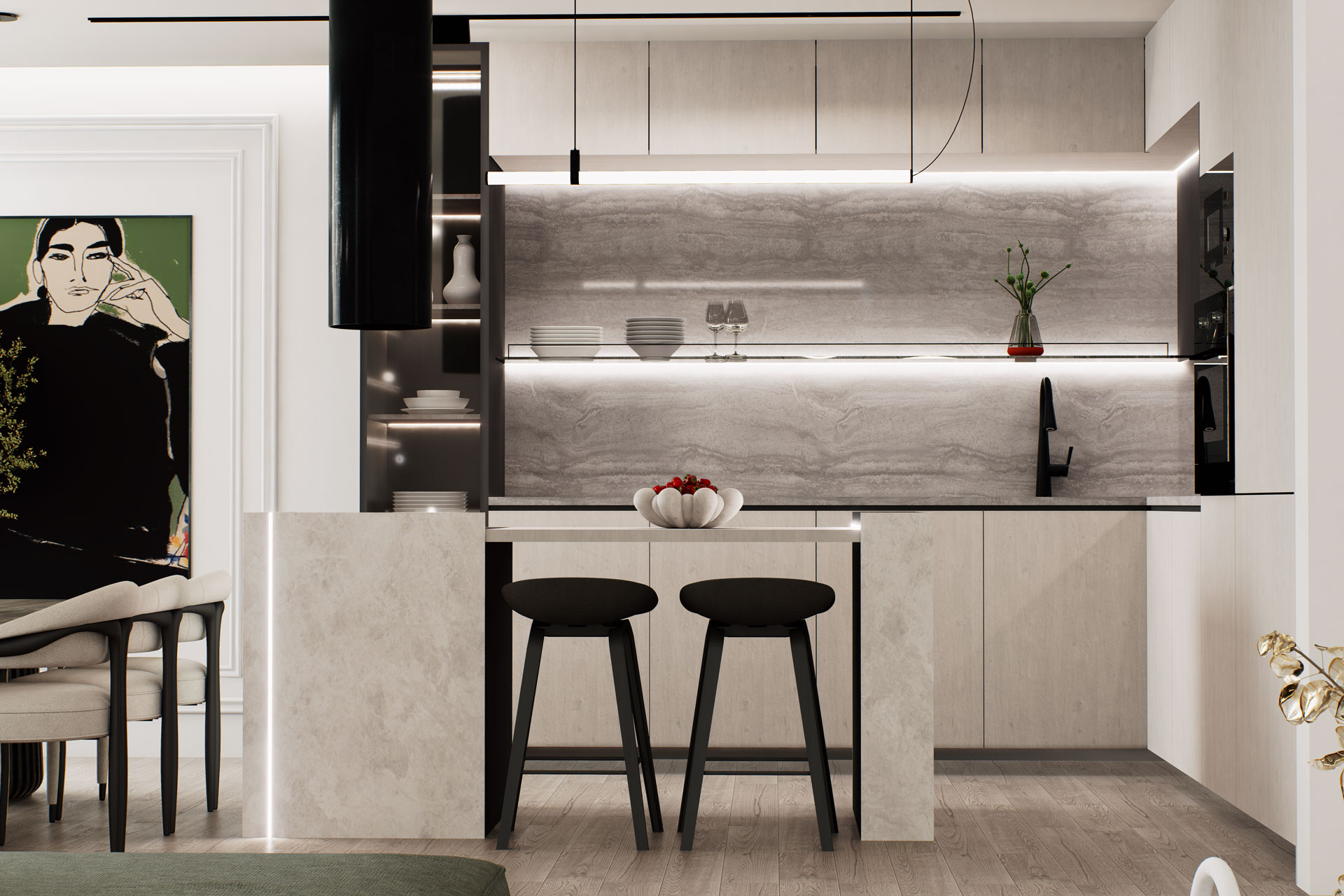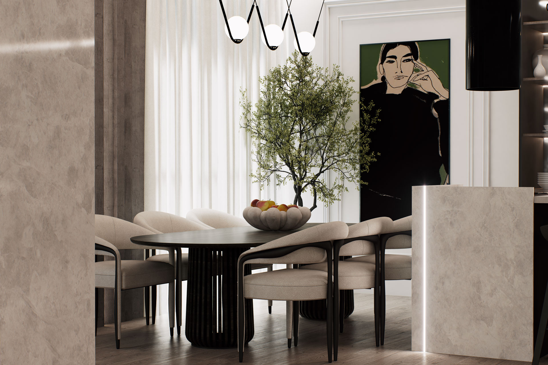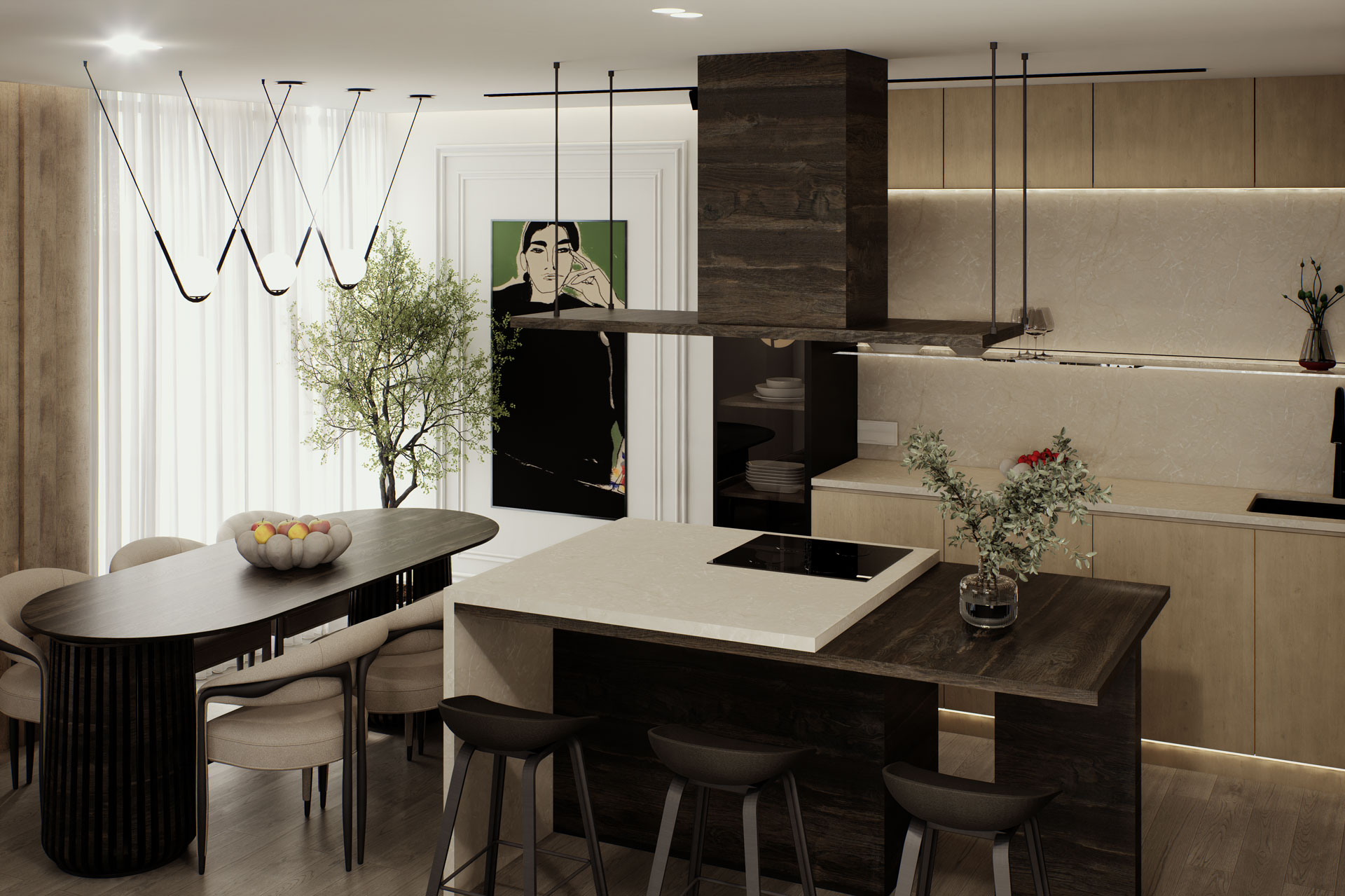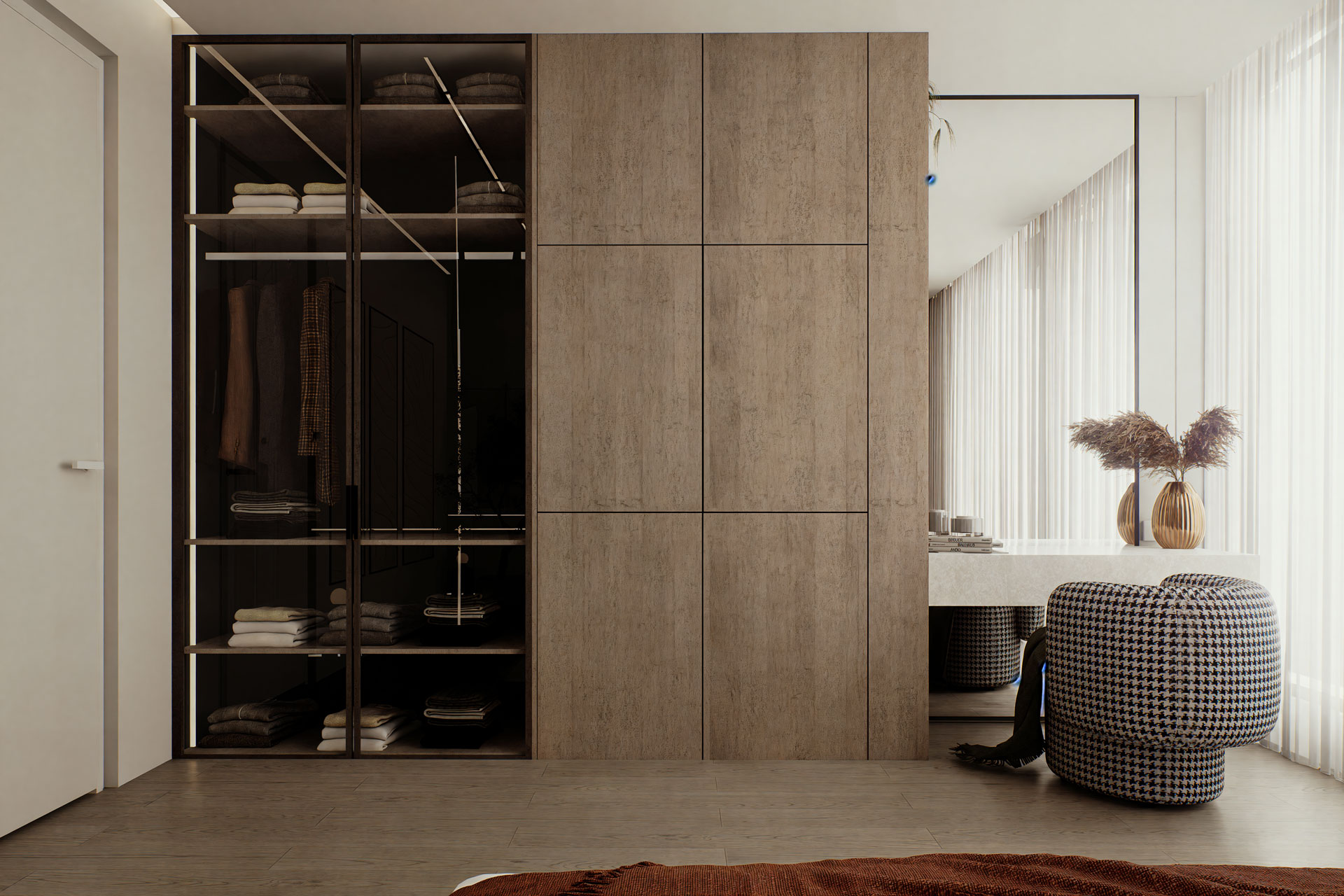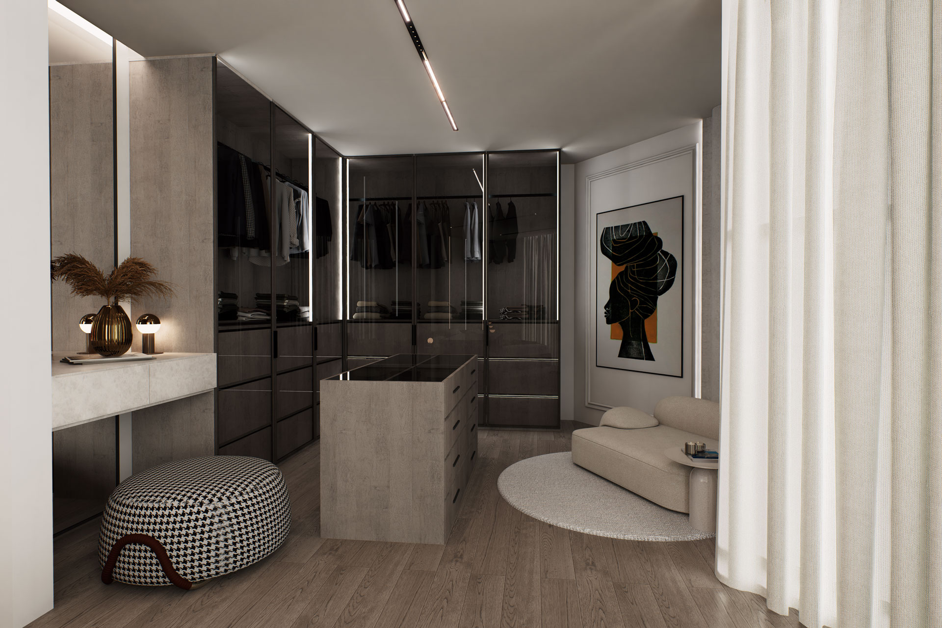 This interior design project represents a contemporary approach that blends minimal elegance with practical functionality, prioritizing a sense of space, natural light, and material harmony.