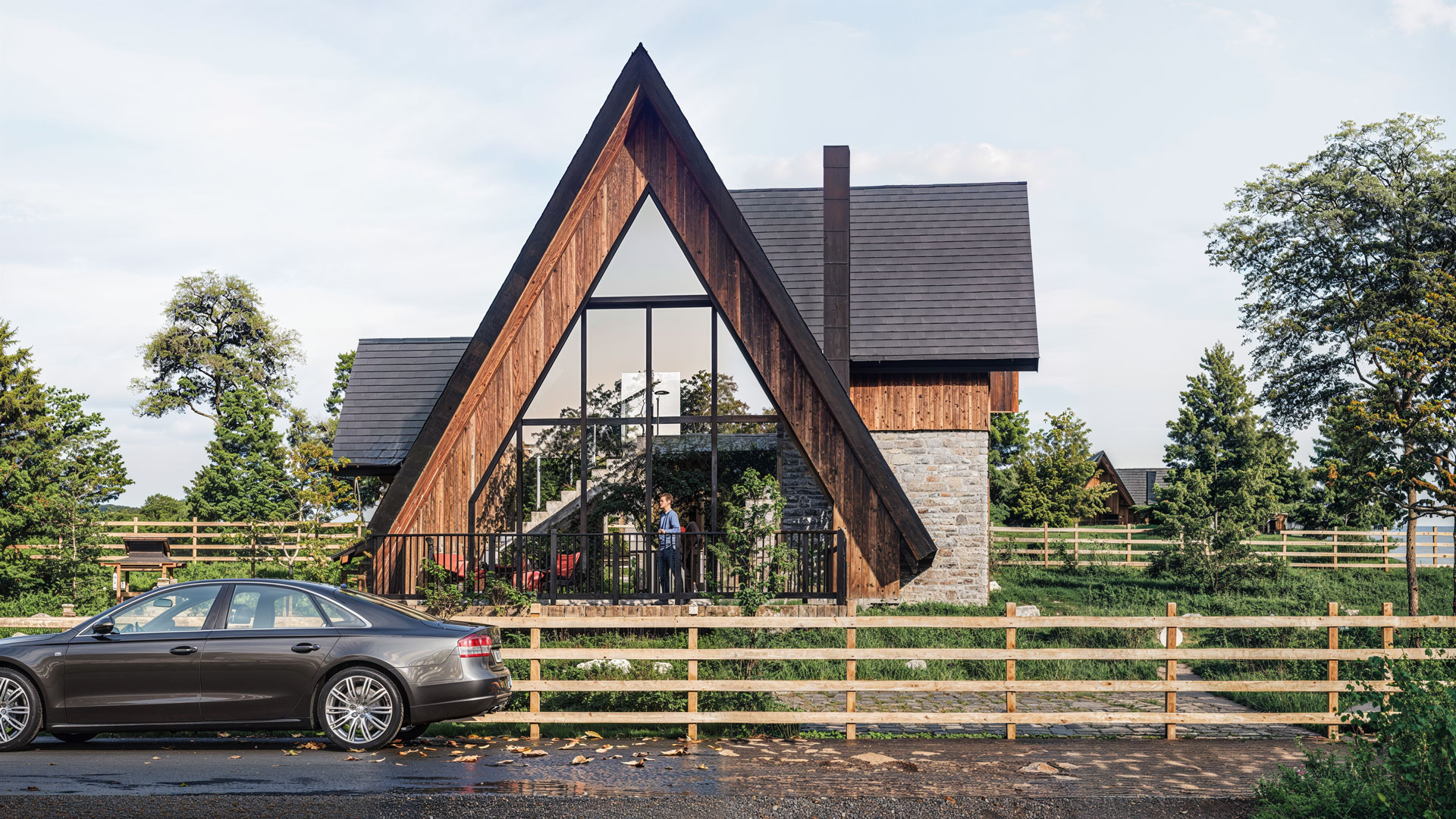 • Volumi prej druri – që përfaqëson pjesën banesore të ngritur të vilës dhe gjuhën tipike alpine