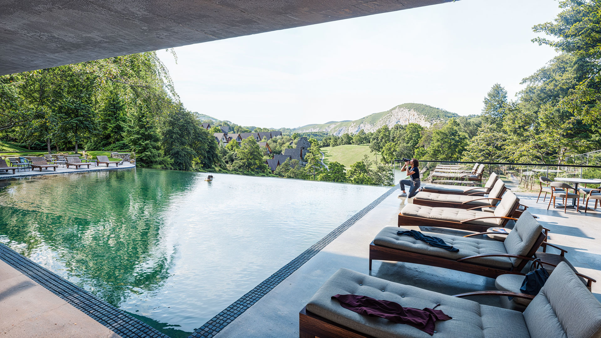 • Pishinë infinity, e pozicionuar për të reflektuar horizontin malor dhe krijuar përjetim vizual të pakrahasueshëm