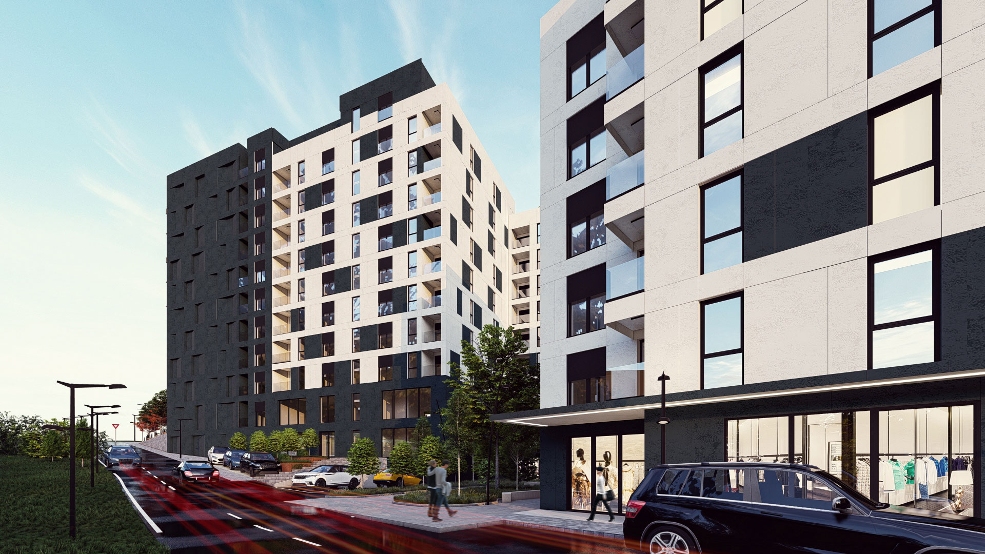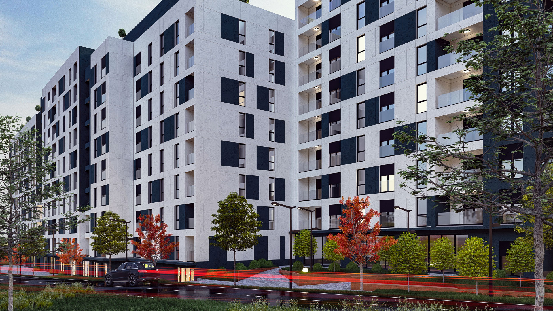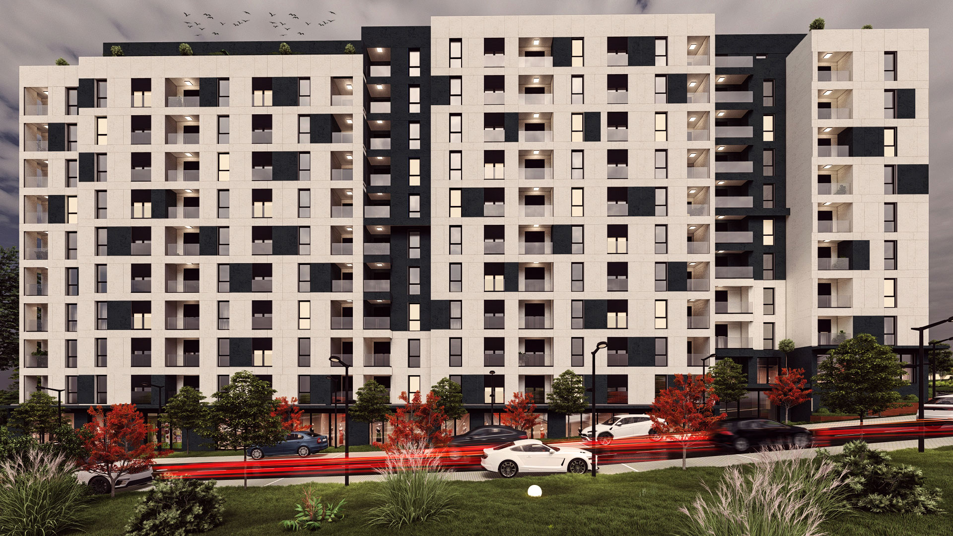 In line with the character of the area and the development vision of “New Prishtina,” the complex includes a commercial building physically separated from the residential blocks, designed for administrative, office, and service functions.